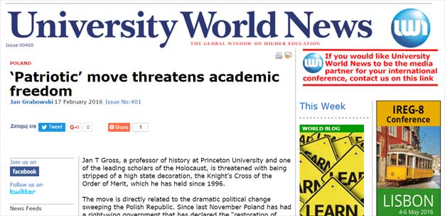 Jan Grabowski w University World News o sprawie odebrania orderu J.T. Grossowi 18.02.2016 13:10:18