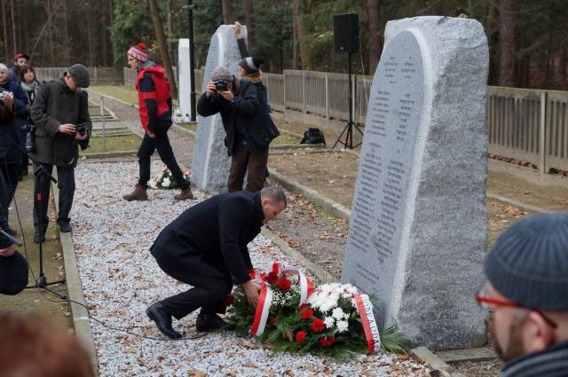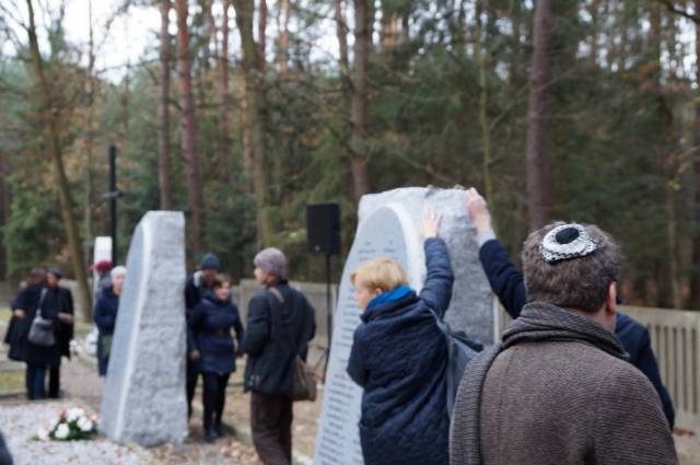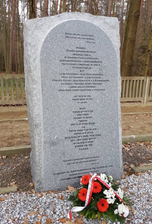 Moralne zobowiązanie, które podjęliśmy na siebie wydając książkę Tadeusza Markiela i Aliny Skibińskej, Jakie to ma znaczenie czy zrobili to z chciwości ... Zagłada domu Trynczerów symbolicznie domknęliśmy odsłaniając wczoraj dwa obeliski upamiętniające pomordowanych. Po ekshumacjach w Gniewczynie i Kańczudze w 1945 roku ich szczątki przeniesiono na cmentaz wojenny w Jagielle-Niechciałce i pochowano w zbiorowych grobach. Dotychczas miejsca spoczynku oznaczone były jedynie tabliczkami z numerami protokołów ekshumacyjnych. Dzięki publicznej zbiórce, dzięki hojności przyjaciół Centrum i naszych czytelników, a także wsparciu Stowarzyszenia Żydowski Instytut Historyczny, te bezimienne tabliczki zastąpiły blisko dwumetrowe granitowe obeliski z imionami i nazwiskami. Dzięki współpracy z Gminą Wyznaniową Żydowską w Warszawie nad grobami zgromadził się minjan, wybrzmiały El Male Rachamim z modlitwą za wszystkich zmarłych odmówione przez rabina Yehoshue Ellisa i kadisz odmówiony przez Łukasza Biedkę, słowami psalmu modlił się także wikary z rzymskokatolickiej parafii w Gniewczynie.