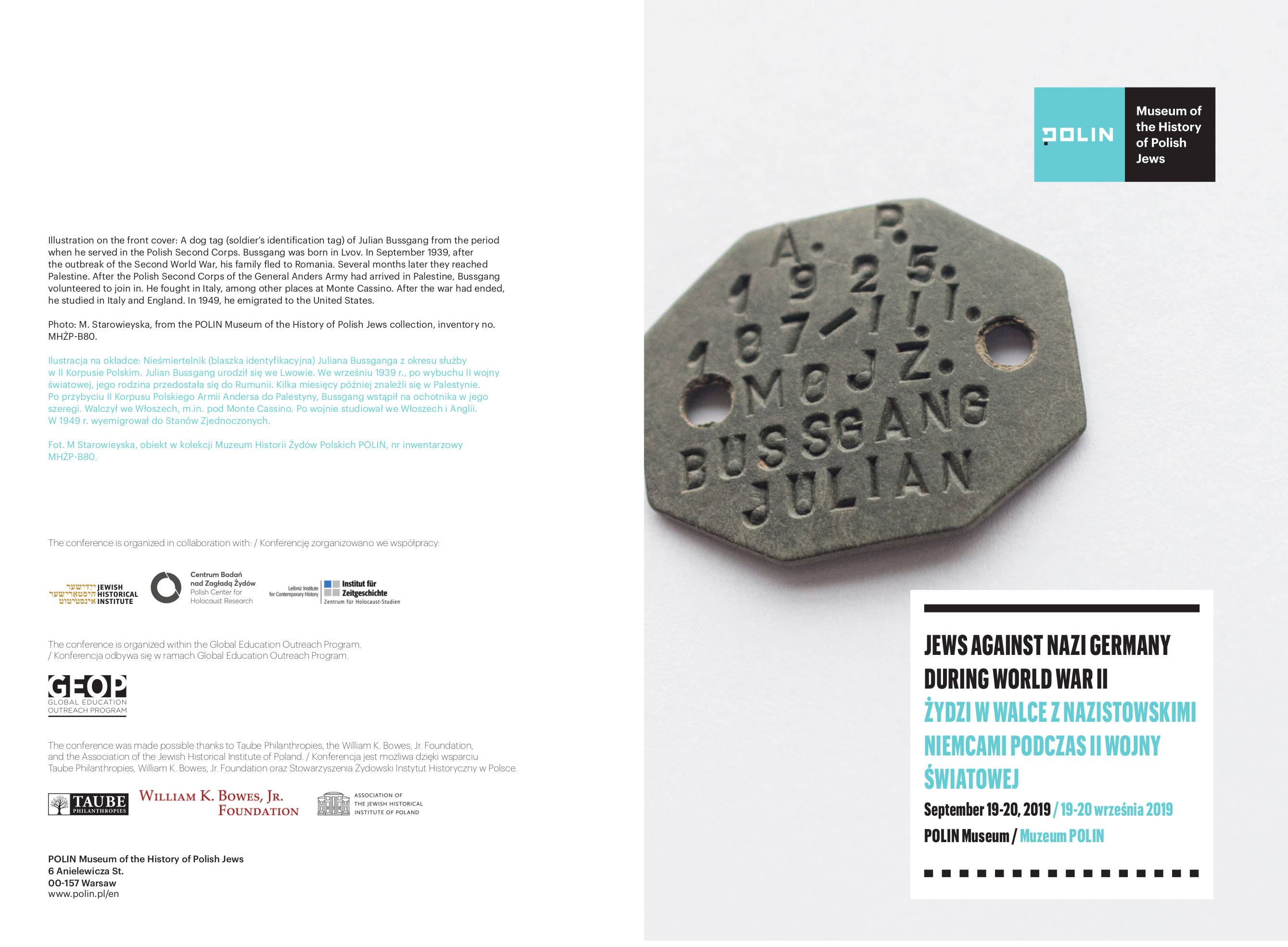Dzięki inicjatywie Muzeum Historii Żydów Polskich POLIN wspólnie z Żydowskim Instytutem Historycznym oraz Institut für Zeitgeschichte mamy zaszczyt być współorganizatorem konferencji "Żydzi w walce z nazistowskimi Niemcami podczas II wojny Światowej". Serdecznie zapraszamy do Muzeum POLIN w dniach 19-20 września.