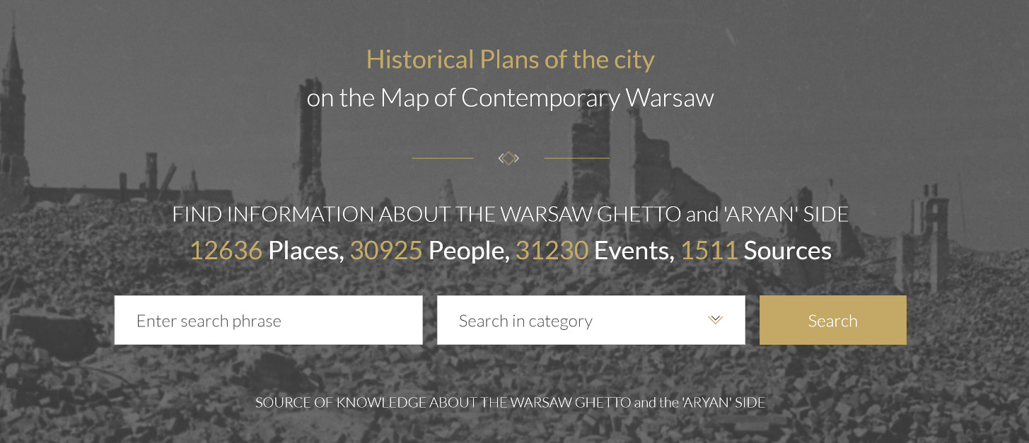 12,583 PLACES, 30,925 PEOPLE, 31,230 EVENTS, AND 1,511 SOURCES – we give you the thoroughly improved Internet Database of the Warsaw Ghetto and ‘Aryan’ Side, supplemented with a few dozen thousand new records and an interactive map and an atlas of the ghetto.