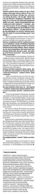 reagował na najdrobniejsze insynuacje pod adresem Żydów - czasem wręcz przesadnie. Łączyłam więc różne epizody i zrozumiałam, że on patrzy na świat przez pryzmat tego, co przeżył w Gniewczynie, gdy miał 13lat ...